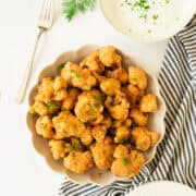 In a small bowl, combine yogurt, dill, garlic, and salt to taste. Mix well and set aside in the refrigerate while you prepare the cauliflower bites.